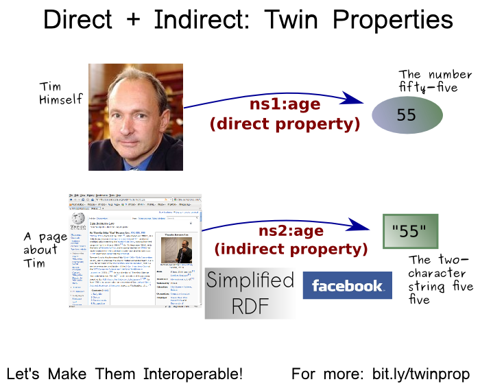 My motivation comes from several directions, including OGP. With OGP, Facebook has motivated a huge number of Web sites to add RDFa markup to their pages. But the RDF they’ve added is quite constrained, and is not practically interoperable with the rest of the Semantic Web, because it uses simplified RDF. One could argue that Facebook made a mistake here, that they should be requiring full “normal” RDF, but my feeling is their engineering decisions were correct, that this extreme degree of simplification is necessary to get any reasonable uptake.